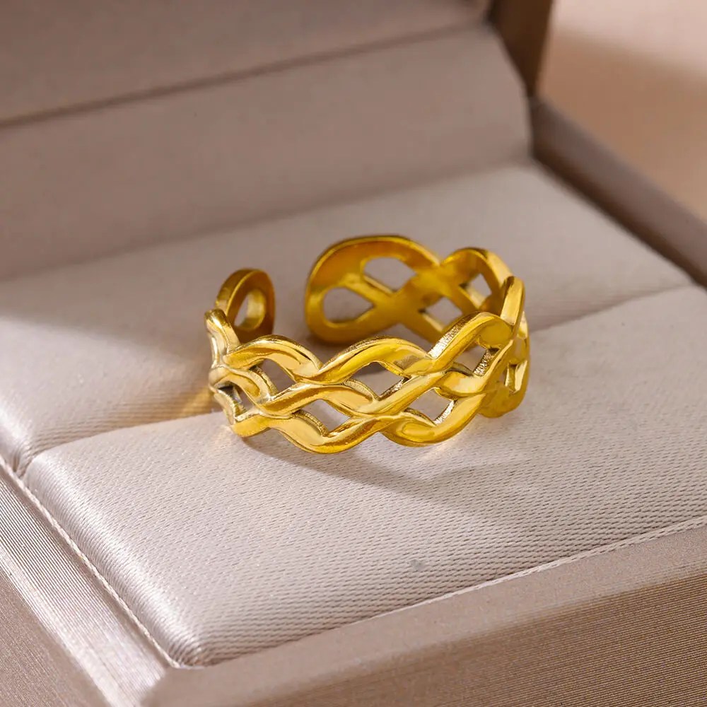 Elevate your jewelry collection with this 2024 New Adjustable Vintage Stainless Steel Ring for Women, a perfect fusion of timeless elegance and modern flair. Crafted from high-quality stainless steel and finished with luxurious 18K gold plating, this unisex ring features a sleek geometric design that complements any outfit. Ideal for weddings, parties, or everyday wear, the adjustable fit ensures comfort and versatility for all finger sizes. Whether you’re gifting it for Valentine’s Day or treating yourself to a trendy accessory, this aesthetic piece adds a refined touch to any look.