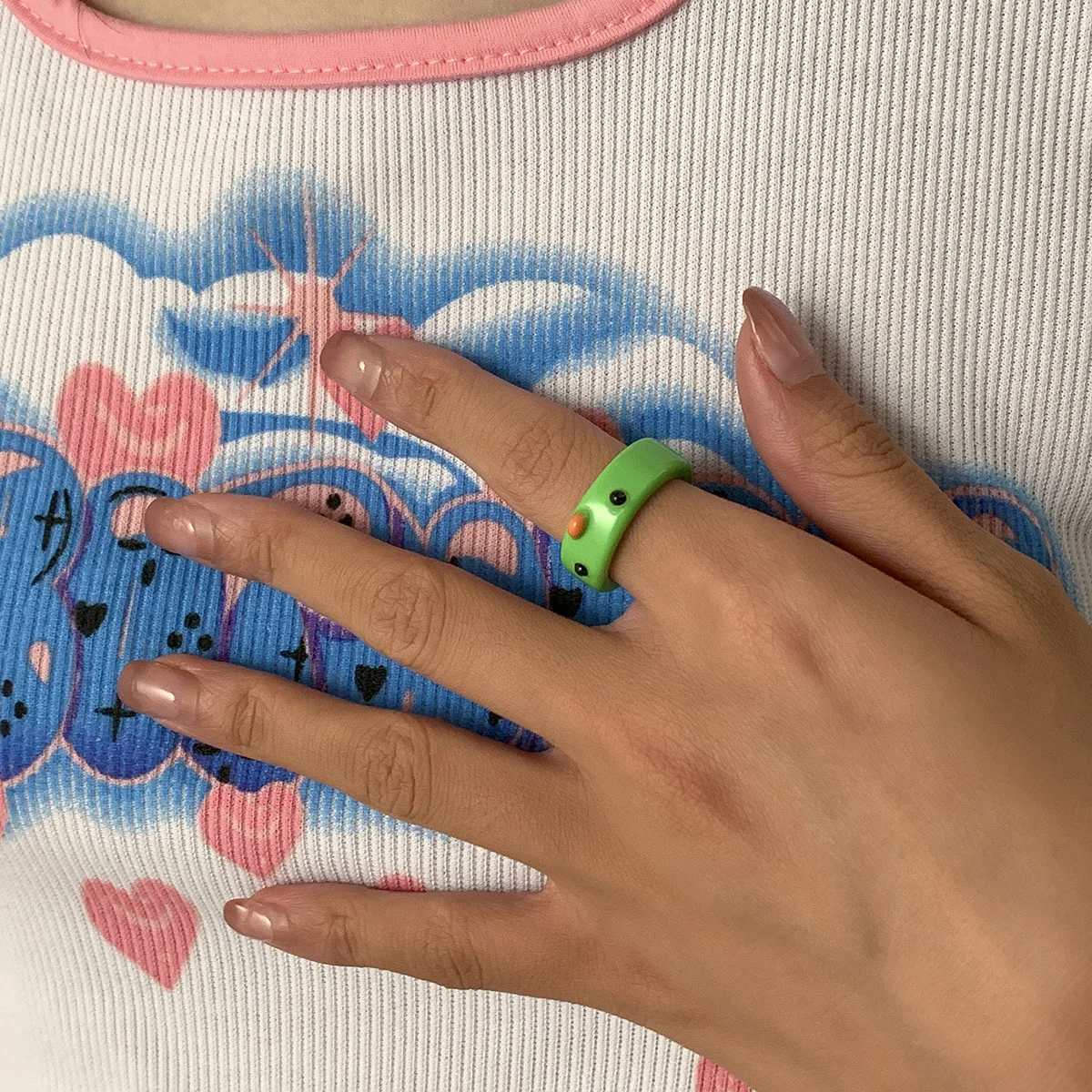 Each ring features an adorable cartoon-style animal design like a frog or chick, making them great conversation starters and fun gifts for friends. Whether you’re headed to a party, on a travel adventure, or just want to brighten your everyday look, these aesthetic rings are ideal for casual wear, friendship gifts, or as a cheerful touch to your outfit.