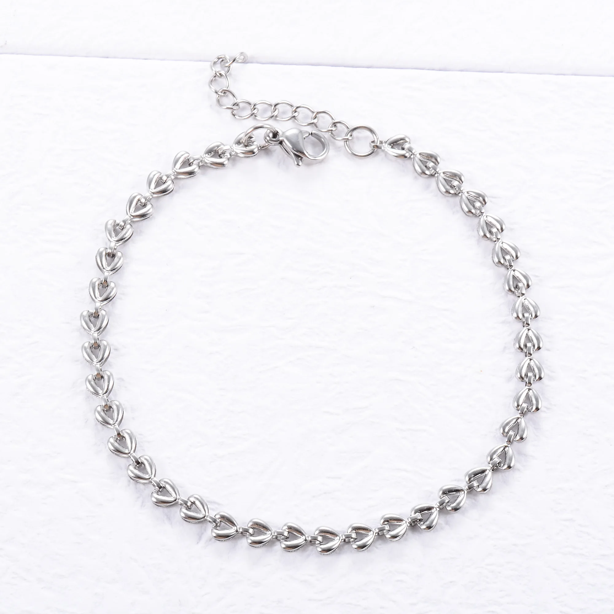 Add a touch of romance and elegance to your look with this Cute Stainless Steel Link Chain Heart Bracelet. Crafted from high-quality stainless steel and finished in luxurious gold or silver color, this versatile piece can be worn as a wrist bracelet, ankle chain, or even a delicate hand chain—perfect for women who love trendy, multi-functional jewelry.