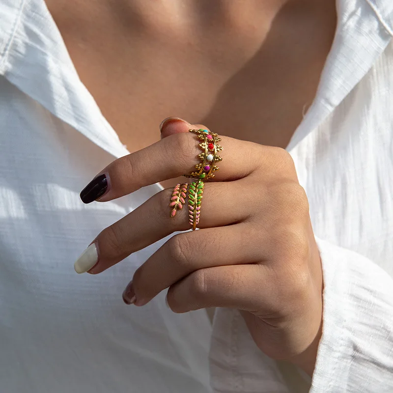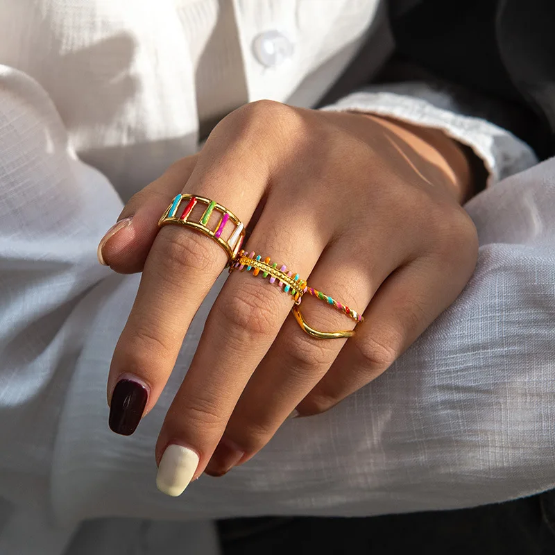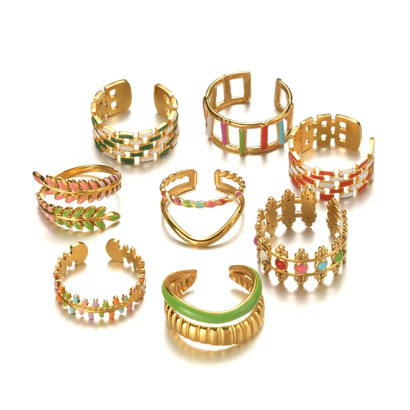 Add a timeless touch of elegance to your jewelry collection with the Freeteeme Retro Dripping Oil Colorful Wide Ring, crafted from high-quality stainless steel. This unisex open ring features a bold, round shape and smooth finish, making it a standout accessory for daily wear or special occasions. Its eye-catching gold color combined with a classic yet trendy design is perfect for parties, school days, weddings, or anniversaries.