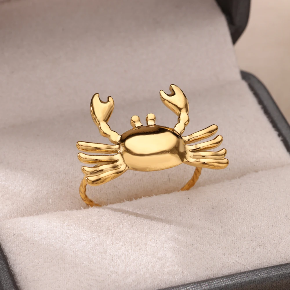 Add a splash of seaside charm to your jewelry collection with this adorable Gold Stainless Steel Crab Ring. Featuring a whimsical crab design, this open ring is a perfect mix of fun and fashion. Its adjustable fit makes it easy to wear on any finger, while the 18k gold-plated stainless steel ensures it stays waterproof, tarnish-resistant, and hypoallergenic.