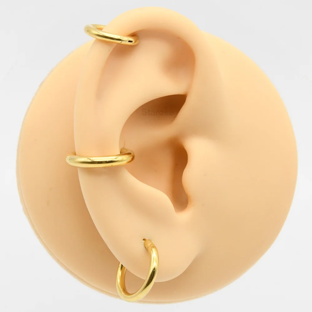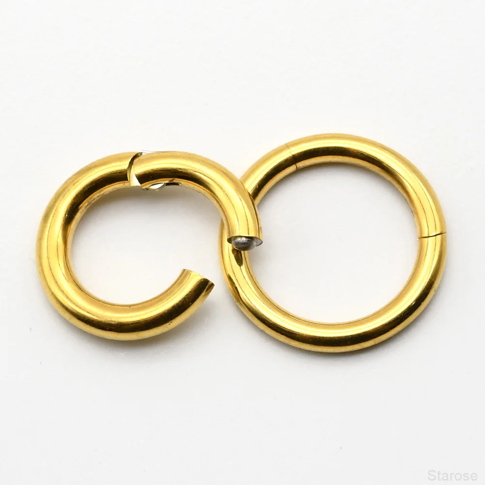 Available in gauges ranging from 12G (2mm) up to 00G (10mm) and inner diameters of 8mm to 18mm, it’s perfect for those who love larger gauges without sacrificing elegance. The smooth hinged segment allows for secure, easy insertion and removal, while the high-quality stainless steel with gold PVD coating ensures it’s nickel-free, lead-free, and hypoallergenic, meeting CE safety standards.